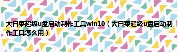 大白菜超级u盘启动制作工具win10(大白菜超级u盘启动制作工具怎么用)