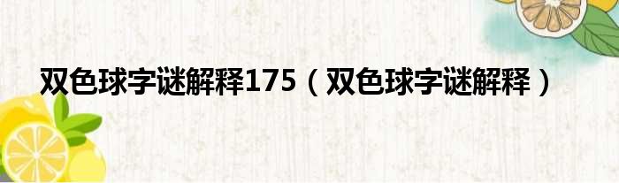 大家好,今天小六子来为大家解答以下的问题,关于双色球字谜解释175,双色球字谜解释这个很多人还不知道,现在让我们一起来看看吧!