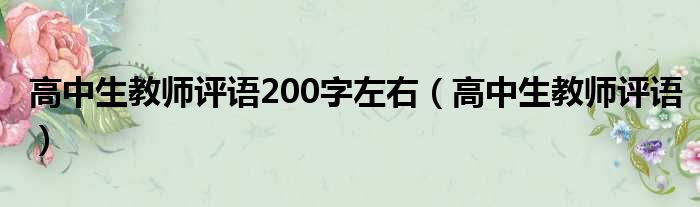 大家好,今天小六子来为大家解答以下的问题,关于高中生教师评语200字左右,高中生教师评语这个很多人还不知道,现在让我们一起来看看吧!