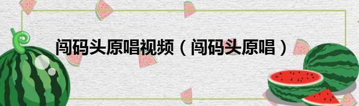 大家好,今天小六子来为大家解答以下的问题,关于闯码头原唱视频,闯码头原唱这个很多人还不知道,现在让我们一起来看看吧!