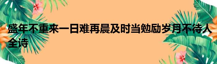 导读 大家好,今天小六子来为大家解答以下的问题,关于盛年不重来一日难再晨及时当勉励岁月不待人全诗这个很多人还不知道,现在让我们一起来看看