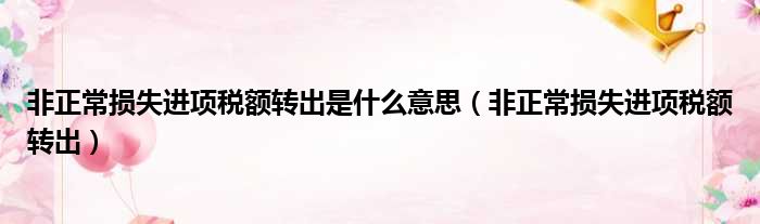 非正常损失进项税额转出是什么意思(非正常损失进项税额转出)
