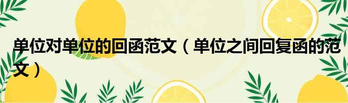 导读 大家好,今天小六子来为大家解答以下的问题,关于单位对单位的回函范文,单位之间回复函的范文这个很多人还不知道,现在让我们一起来看看吧