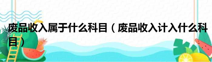 导读 大家好,今天小六子来为大家解答以下的问题,关于废品收入属于什么科目,废品收入计入什么科目这个很多人还不知道,现在让我们一起来看看吧