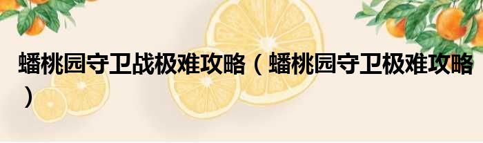 蟠桃园守卫战极难攻略(蟠桃园守卫极难攻略)