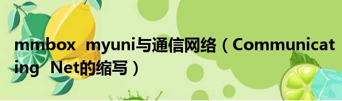 大家好,今天小六子来为大家解答以下的问题,关于mmbox myuni与通信网络,Communicating Net的缩写这个很多人还不知道,现在让我们一起来看看吧!