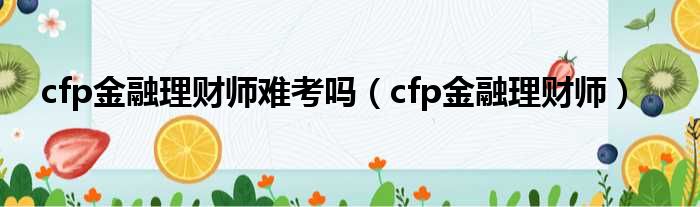 大家好,今天小六子来为大家解答以下的问题,关于cfp金融理财师难考吗,cfp金融理财师这个很多人还不知道,现在让我们一起来看看吧!