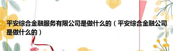 平安综合金融服务有限公司是做什么的(平安综合金融公司是做什么的)