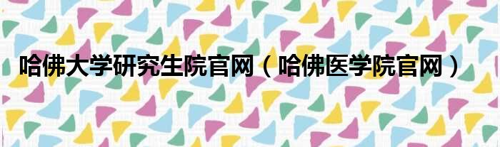 哈佛大学研究生院官网(哈佛医学院官网)