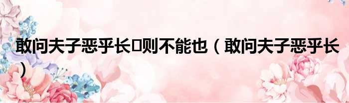 导读 大家好,今天小六子来为大家解答以下的问题,关于敢问夫子恶乎长⋯则不能也,敢问夫子恶乎长这个很多人还不知道,现在让我们一起来看看吧!1
