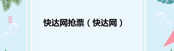 大家好,今天小六子来为大家解答以下的问题,关于快达网抢票,快达网这个很多人还不知道,现在让我们一起来看看吧!