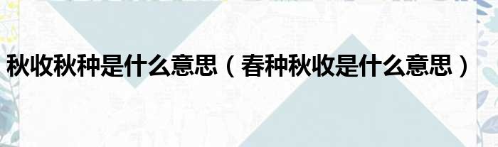 大家好,今天小六子来为大家解答以下的问题,关于秋收秋种是什么意思,春种秋收是什么意思这个很多人还不知道,现在让我们一起来看看吧!