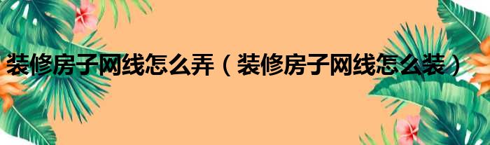 装修房子网线怎么弄(装修房子网线怎么装)