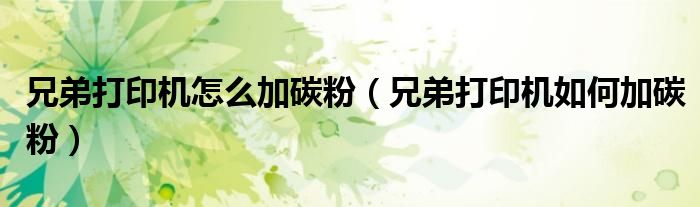 兄弟打印机怎么加碳粉(兄弟打印机如何加碳粉)