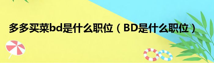 导读 大家好,今天小六子来为大家解答以下的问题,关于多多买菜bd是什么职位,BD是什么职位这个很多人还不知道,现在让我们一起来看看吧!1、所谓