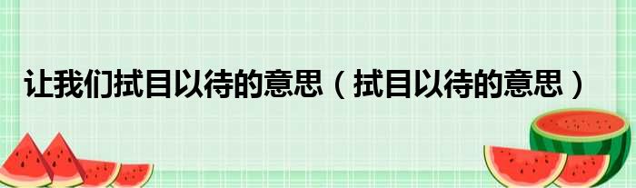导读 大家好,今天小六子来为大家解答以下的问题,关于让我们拭目以待的意思,拭目以待的意思这个很多人还不知道,现在让我们一起来看看吧!1、拭