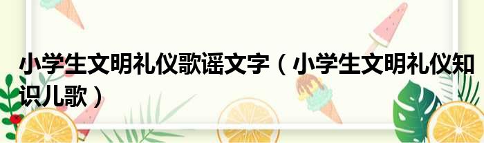小学生文明礼仪歌谣文字(小学生文明礼仪知识儿歌)