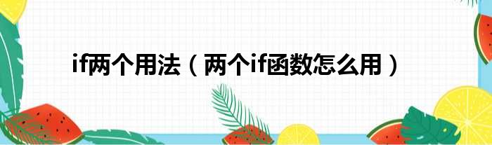 大家好,今天小六子来为大家解答以下的问题,关于if两个用法,两个if函数怎么用这个很多人还不知道,现在让我们一起来看看吧!