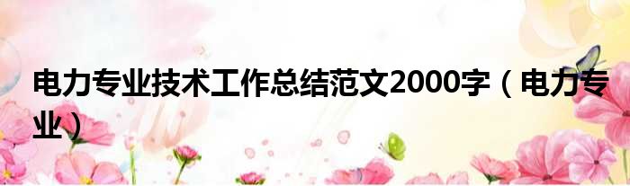 导读 大家好,今天小六子来为大家解答以下的问题,关于电力专业技术工作总结范文2000字,电力专业这个很多人还不知道,现在让我们一起来看看吧!1