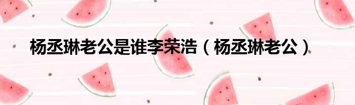 导读 大家好,今天小六子来为大家解答以下的问题,关于杨丞琳老公是谁李荣浩,杨丞琳老公这个很多人还不知道,现在让我们一起来看看吧!1、没有,