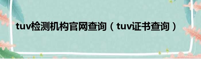 导读 大家好,今天小六子来为大家解答以下的问题,关于tuv检测机构官网查询,tuv证书查询这个很多人还不知道,现在让我们一起来看看吧!1、证书上