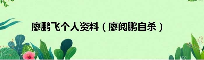 大家好,今天小六子来为大家解答以下的问题,关于廖鹏飞个人资料,廖阅鹏自杀这个很多人还不知道,现在让我们一起来看看吧!