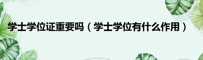 学士学位证重要吗(学士学位有什么作用)