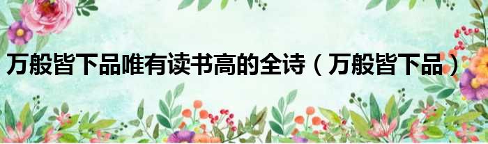 导读 大家好,今天小六子来为大家解答以下的问题,关于万般皆下品唯有读书高的全诗,万般皆下品这个很多人还不知道,现在让我们一起来看看吧!1、