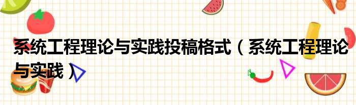 系统工程理论与实践投稿格式(系统工程理论与实践)