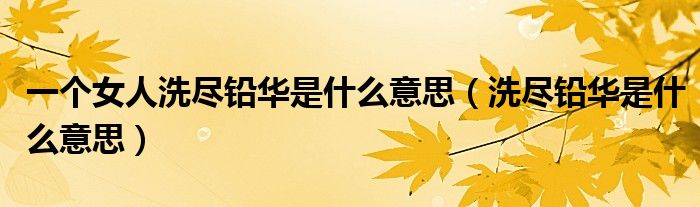 一个女人洗尽铅华是什么意思(洗尽铅华是什么意思)