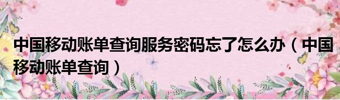 中国移动账单查询服务密码忘了怎么办(中国移动账单查询)