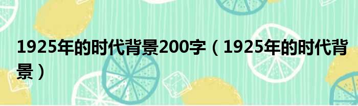 导读 大家好,今天小六子来为大家解答以下的问题,关于1925年的时代背景200字,1925年的时代背景这个很多人还不知道,现在让我们一起来看看吧!1