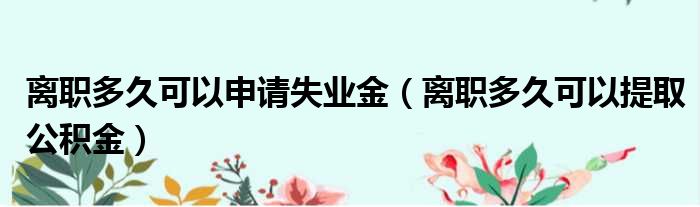 离职多久可以申请失业金(离职多久可以提取公积金)