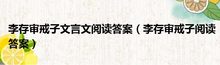 李存审戒子文言文阅读答案(李存审戒子阅读答案)