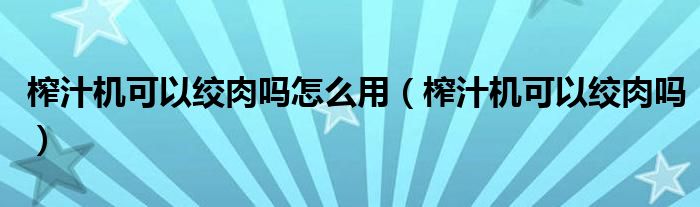 榨汁机可以绞肉吗怎么用(榨汁机可以绞肉吗)