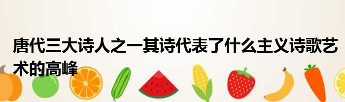 导读 大家好,今天小六子来为大家解答以下的问题,关于唐代三大诗人之一其诗代表了什么主义诗歌艺术的高峰这个很多人还不知道,现在让我们一起来