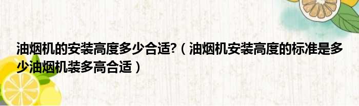 油烟机的安装高度多少合适?(油烟机安装高度的标准是多少油烟机装多高合适)