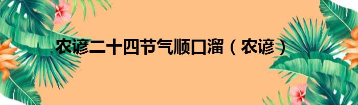 大家好,今天小六子来为大家解答以下的问题,关于农谚二十四节气顺口溜,农谚这个很多人还不知道,现在让我们一起来看看吧!