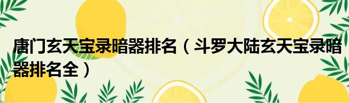 唐门玄天宝录暗器排名(斗罗大陆玄天宝录暗器排名全)