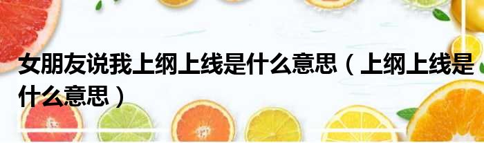 导读 大家好,今天小六子来为大家解答以下的问题,关于女朋友说我上纲上线是什么意思,上纲上线是什么意思这个很多人还不知道,现在让我们一起来