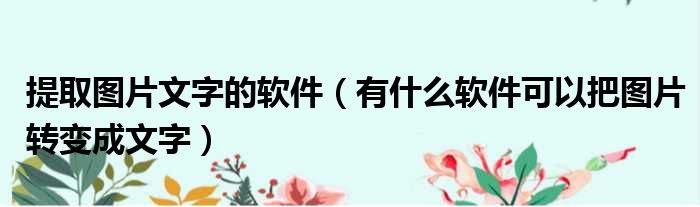 提取图片文字的软件(有什么软件可以把图片转变成文字)