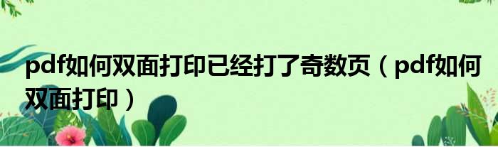 pdf如何双面打印已经打了奇数页(pdf如何双面打印)
