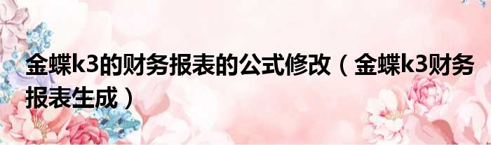 金蝶k3的财务报表的公式修改(金蝶k3财务报表生成)