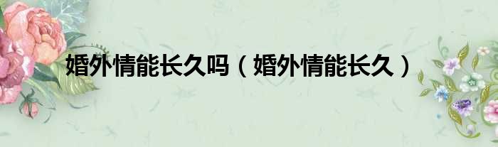 大家好,今天小六子来为大家解答以下的问题,关于婚外情能长久吗,婚外情能长久这个很多人还不知道,现在让我们一起来看看吧!