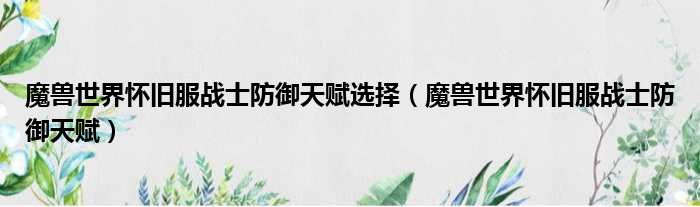 魔兽世界怀旧服战士防御天赋选择(魔兽世界怀旧服战士防御天赋)
