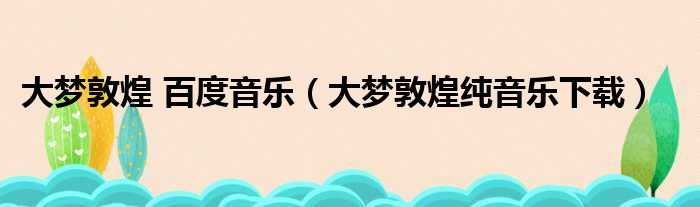 导读 大家好,今天小六子来为大家解答以下的问题,关于大梦敦煌 百度音乐,大梦敦煌纯音乐下载这个很多人还不知道,现在让我们一起来看看吧!1、