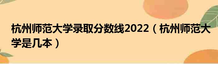 杭州师范大学录取分数线2022(杭州师范大学是几本)