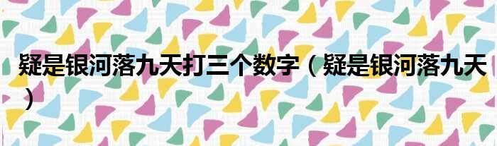 导读 大家好,今天小六子来为大家解答以下的问题,关于疑是银河落九天打三个数字,疑是银河落九天这个很多人还不知道,现在让我们一起来看看吧!1