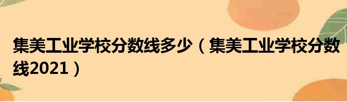 集美工业学校分数线多少(集美工业学校分数线2021)