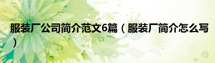 导读 大家好,今天小六子来为大家解答以下的问题,关于服装厂公司简介范文6篇,服装厂简介怎么写这个很多人还不知道,现在让我们一起来看看吧!1